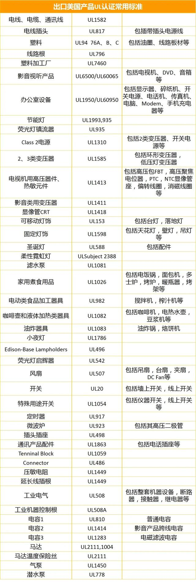 三、UL认证产品类别有哪些,对应的标准是什么?